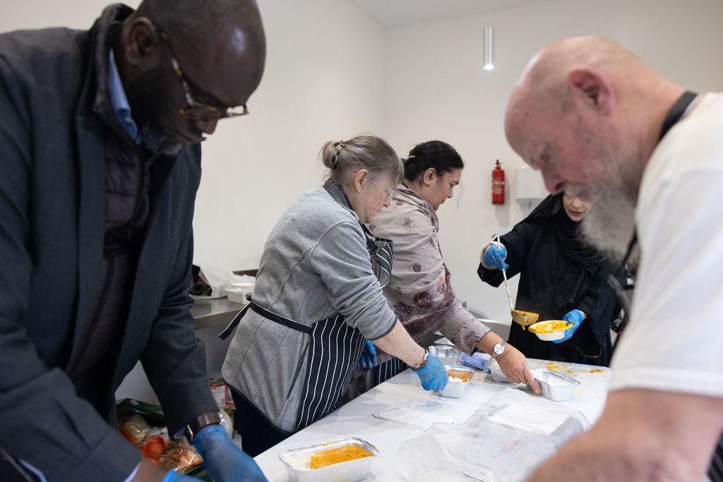 Providing warm meals and essential food to individuals and families.