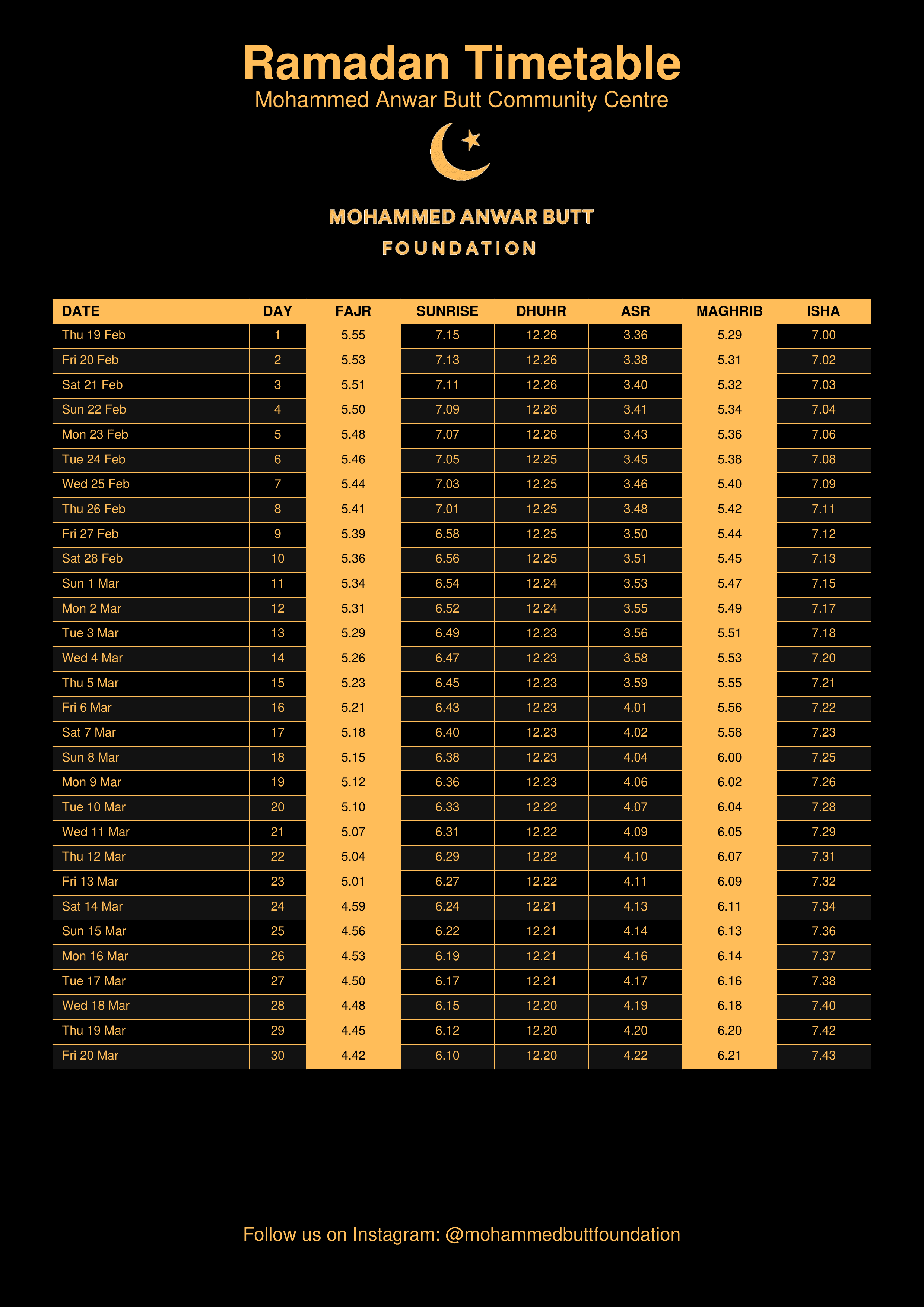 Ramadan Timetable